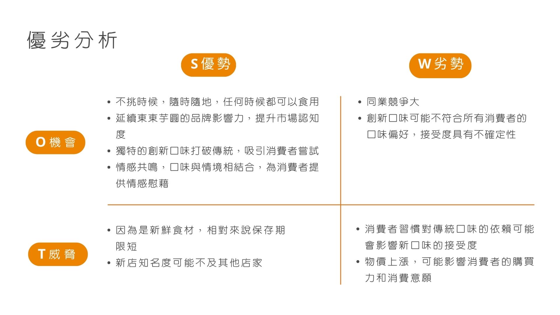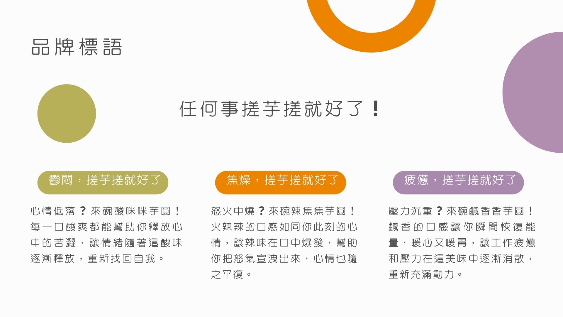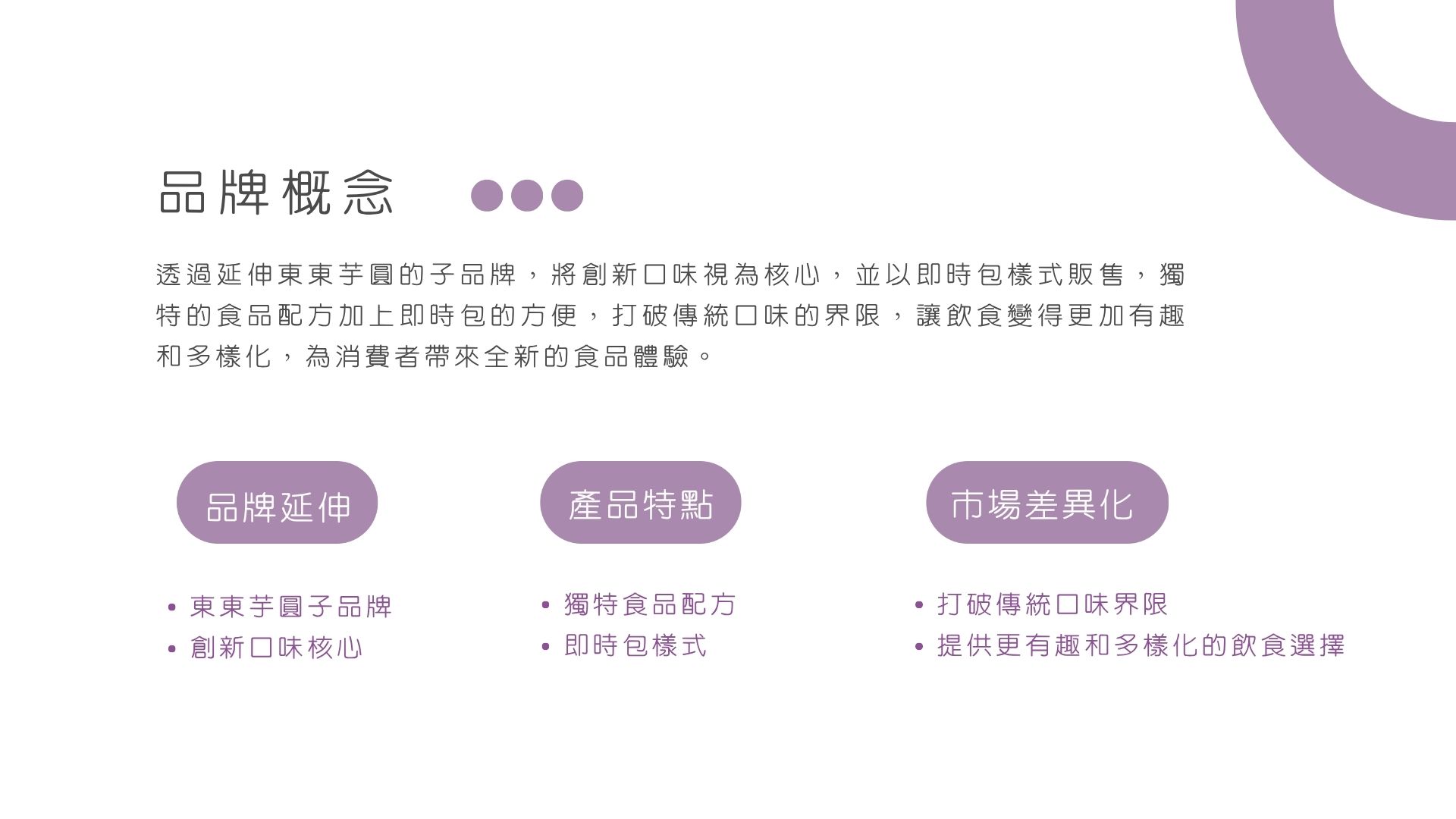 透過延伸東東芋圓的子品牌,將創新口味視為核心,有別與以往對芋圓的既定口味,並以即食包樣式販售,打破傳統口味的界限,鼓勵消費者勇於嘗試新的口味體驗,讓飲食變得更加有趣和多樣化,享受到全新的食品趣味並將其融入到日常生活中,為消費者帶來全新的食品體驗。
