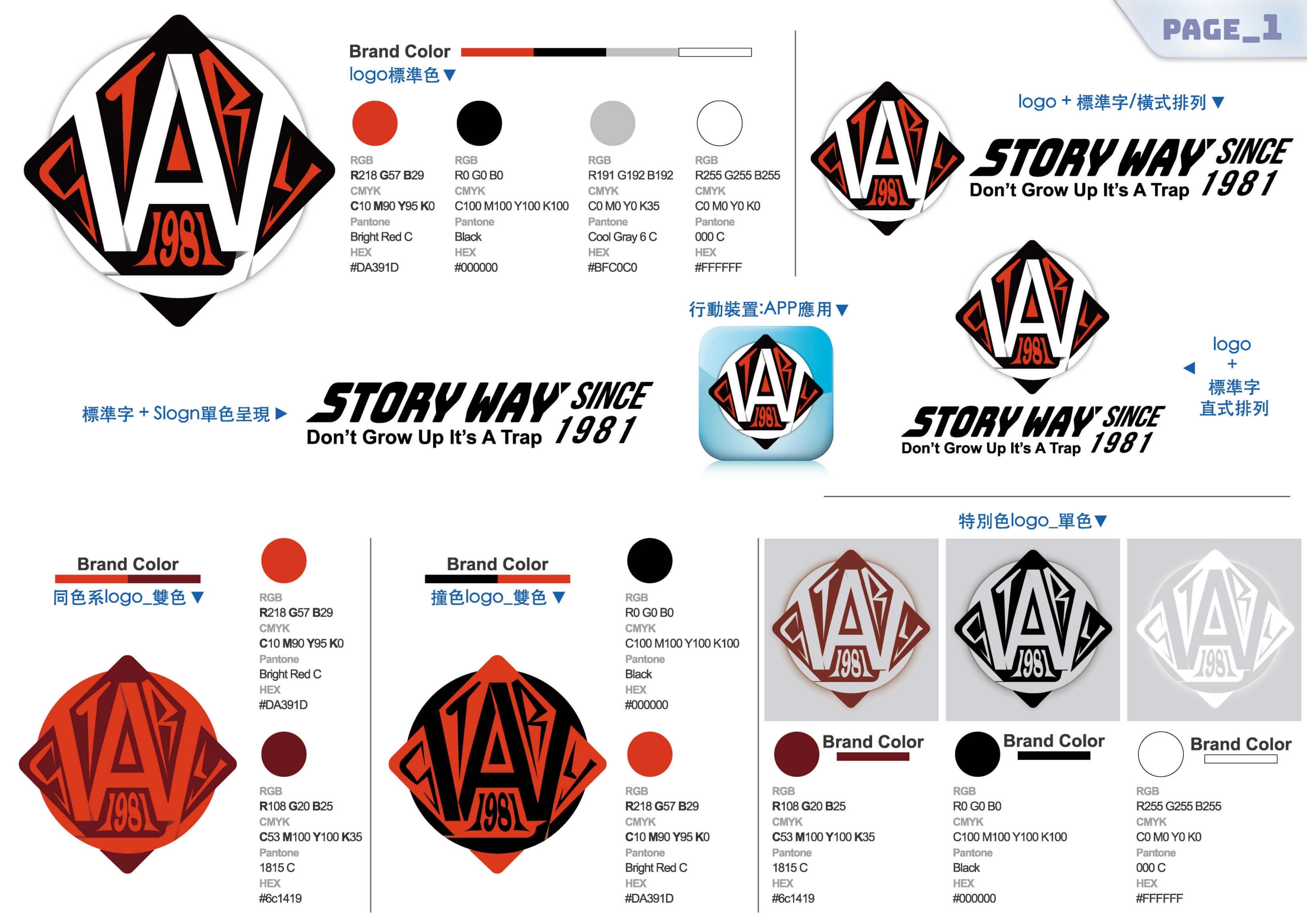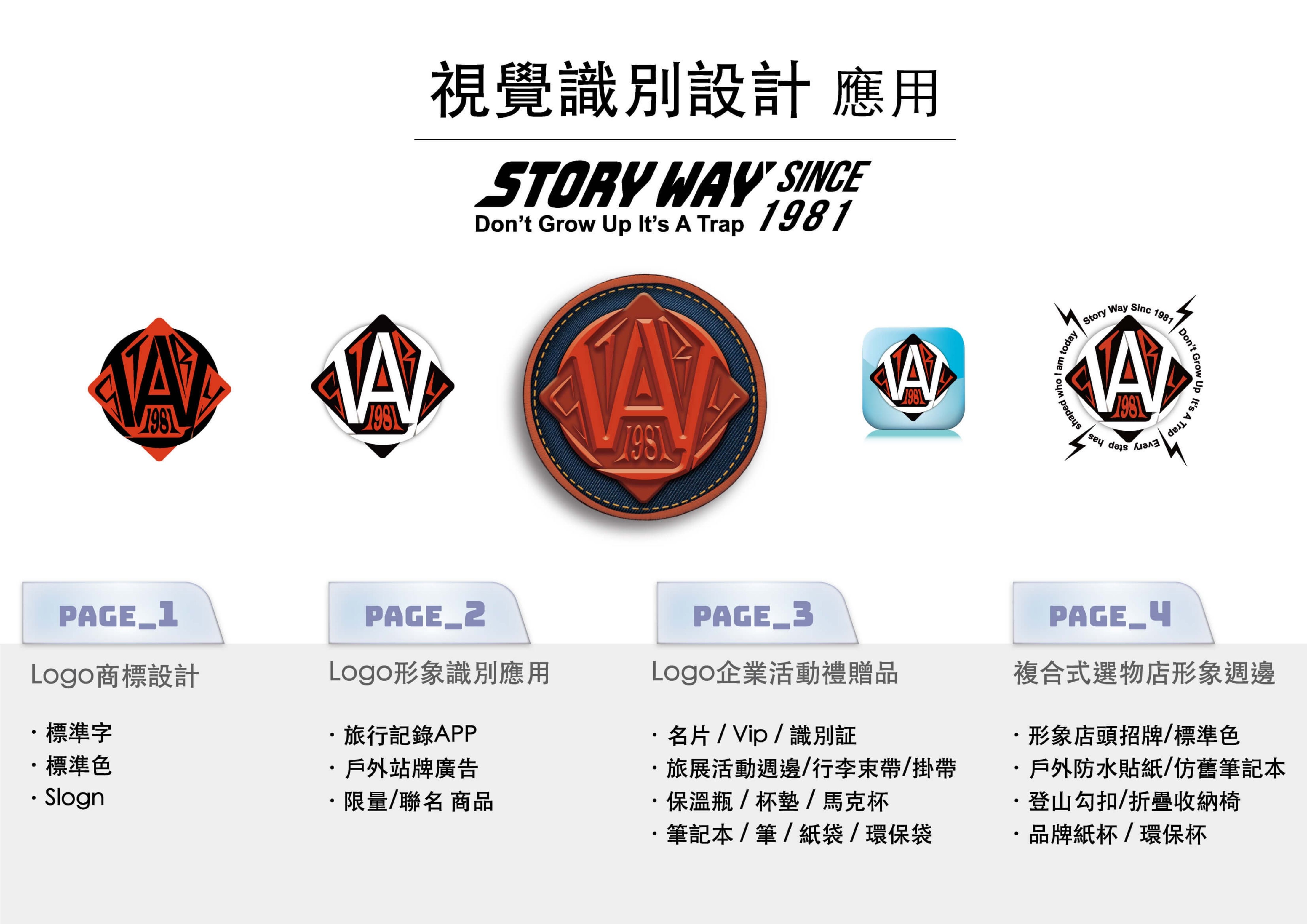 標誌核心以「WAY」三字環繞構成圓形結構,中心嵌入品牌名 STORY 及創立年份 1981。